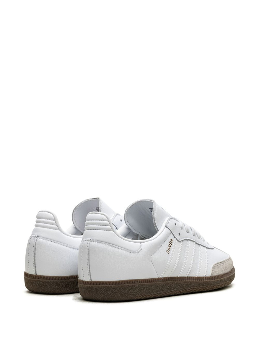 First released in 1950, adidas’ Samba sneakers were designed d to provide footballers with grip and stability. This iteration is presented in white leather with tonal signature serrated 3-Stripes to the sides, while sat atop the traditional gum rubber outsole.