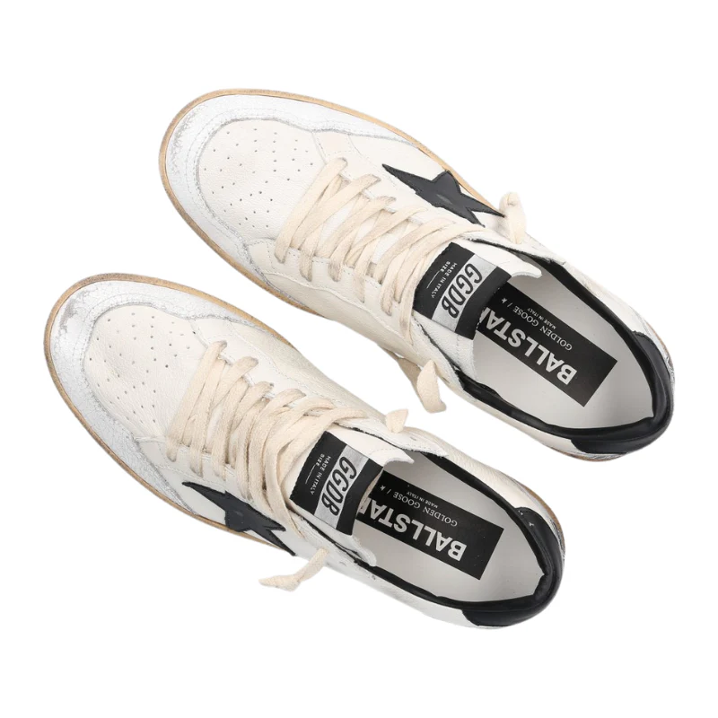 - The Golden Goose Ball Star sneakers are crafted from leather, in a classic low-top silhouette. Designed with a focus on comfort and durability, they combine signature distressed details with a relaxed, off-duty vibe.