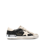 - A timeless icon yet one that’s constantly evolving. At Golden, we love taking our classics and reworking them all the time, always from a new angle. These Super-Star with a black glitter upper feature a vintage-effect cream leather star and heel tab. The dove-gray suede inserts, such as the tongue and insert on the back, silver multi-foxing and cream-colored laces add the finishing touch.