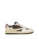 Nodding to the Air Jordan 1 High Travis Scott Mocha, the Air Jordan 1 Low Travis Scott Reverse Mocha offers a similar Mocha and off-white palette but in a reverse-style color blocking. Its upper is constructed with a Mocha Durabuck base, white leather overlays, and signature reverse Swooshes. Hits of red on the Wings logo heel embroidery and woven tongue label gives a sharp contrast to the design’s neutral look. From there, a yellowed Air sole adds a vintage feel.