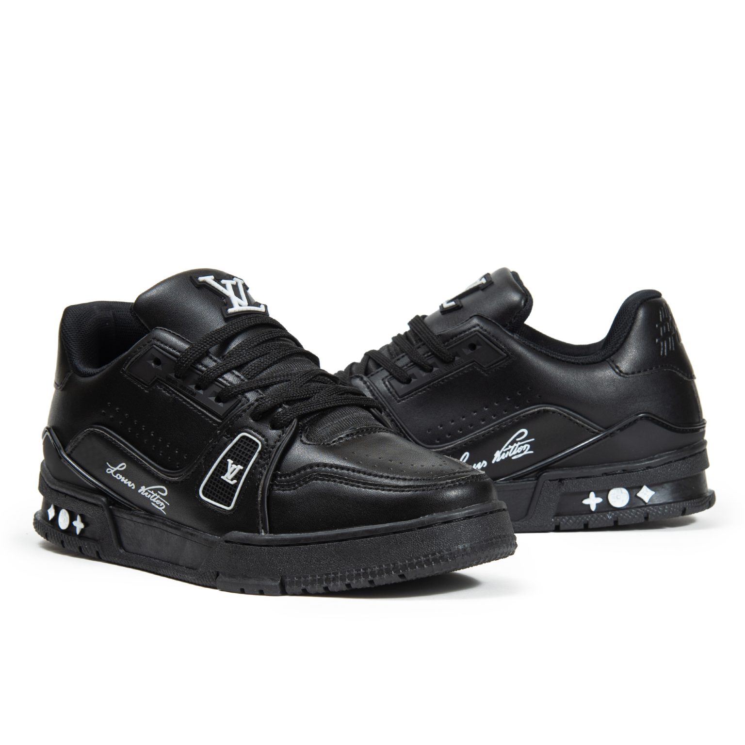 This winter version of the LV Trainer sneakers is made of supple calfskin with a warm wool lining. The model features a black rubber sole that matches the upper, and is complemented by the LV