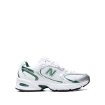 Mesh and leather are used to complete the New Balance 530 White Nightwatch Green sneaker design. White mesh serves as the foundation for the sneaker’s upper. There are white leather accents at the heel and the main part. Silver-tone leather lines the nose and lacing eyelets. The underlays and the green “N” logo stand out against the white background. The 530 White Nightwatch shoes also have ABZORB technology.