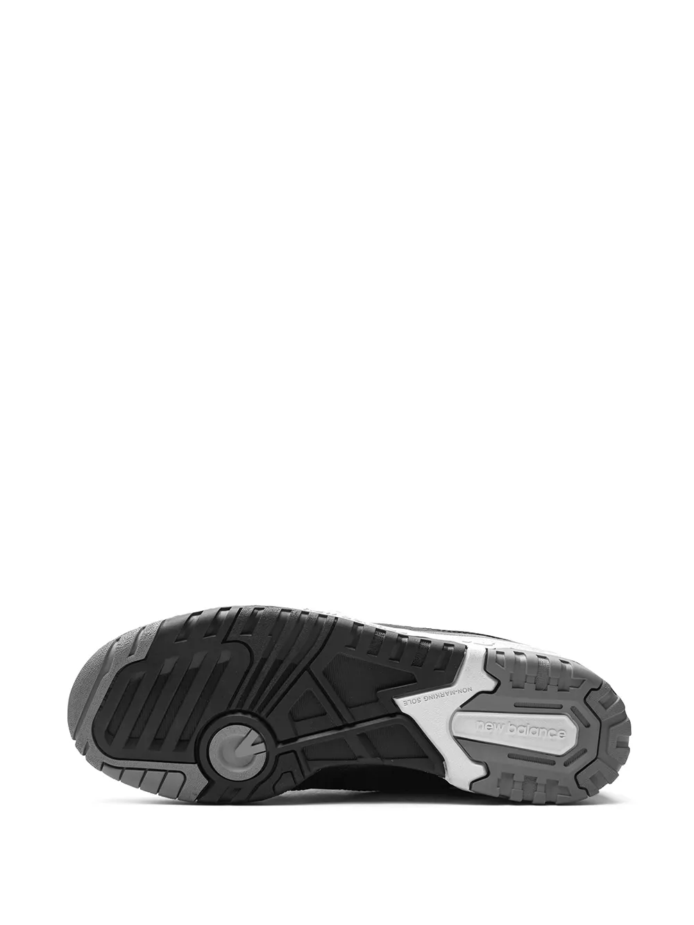 The New Balance 550 Shadow features a black and grey leather upper with mesh paneling around the collars. A puffed New Balance logo and “550” branding on the quarter panels nods to the origins of New Balance’s basketball line. At the base, a white midsole with a black and grey outsole completes the design.