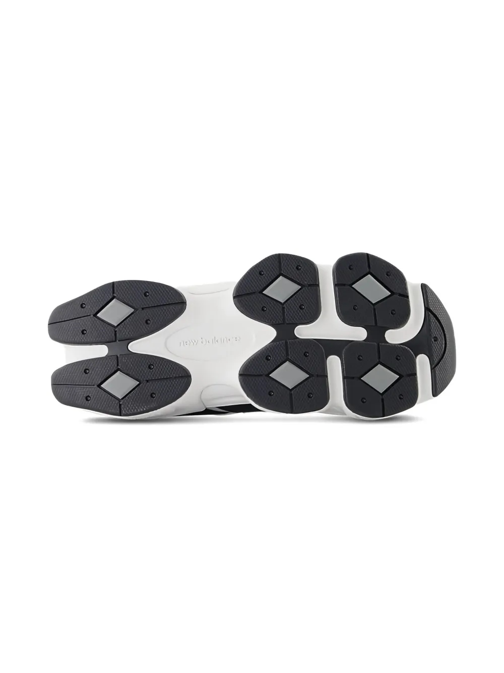 The New Balance 9060 Grey Jet Black is an athletic shoe featuring multiple layers on the upper. A Grey mesh fabric base is overlaid with Black suede that borders the midsole. Grey and White leather caging creates the soft geometry of the upper, accented by the linear N logo in White and Grey. The layered, textured mid- and outsole repeat the White, Grey, and Black colors, echoing the upper’s layered aesthetic. New Balance branding appears on the tongue and rear heel.